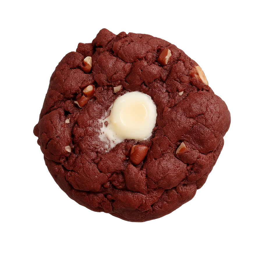 Soft, decadent, and unforgettable. This red velvet cookie is rich in flavor with a hint of cocoa, loaded with creamy white chocolate chunks, and a delicious cream cheese ganache filling.